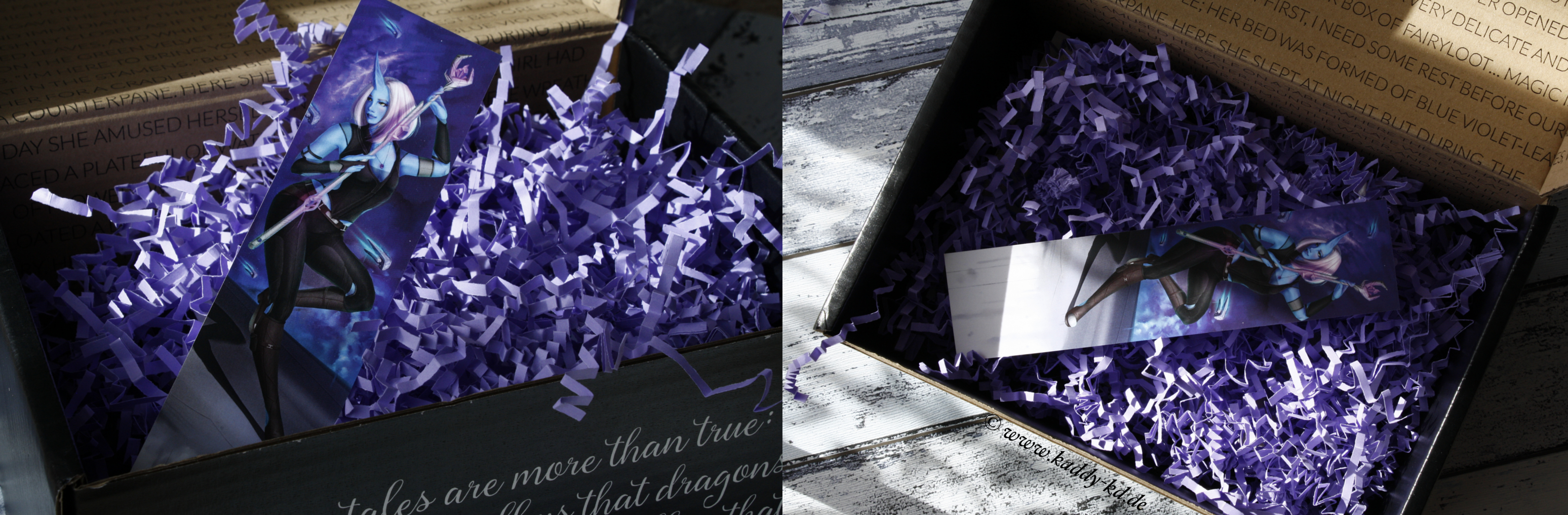 Das Lesezeichen von der Februar Box war in lilanes Seidenpapier verpackt mit einem kleinen, schwarzen Bändchen. Das Öffnen davon hat zusätzlich die Vorfreude angestachelt und als ich dann dieses schöne Lesezeichen gesehen habe, habe ich mich riesig gefreut.